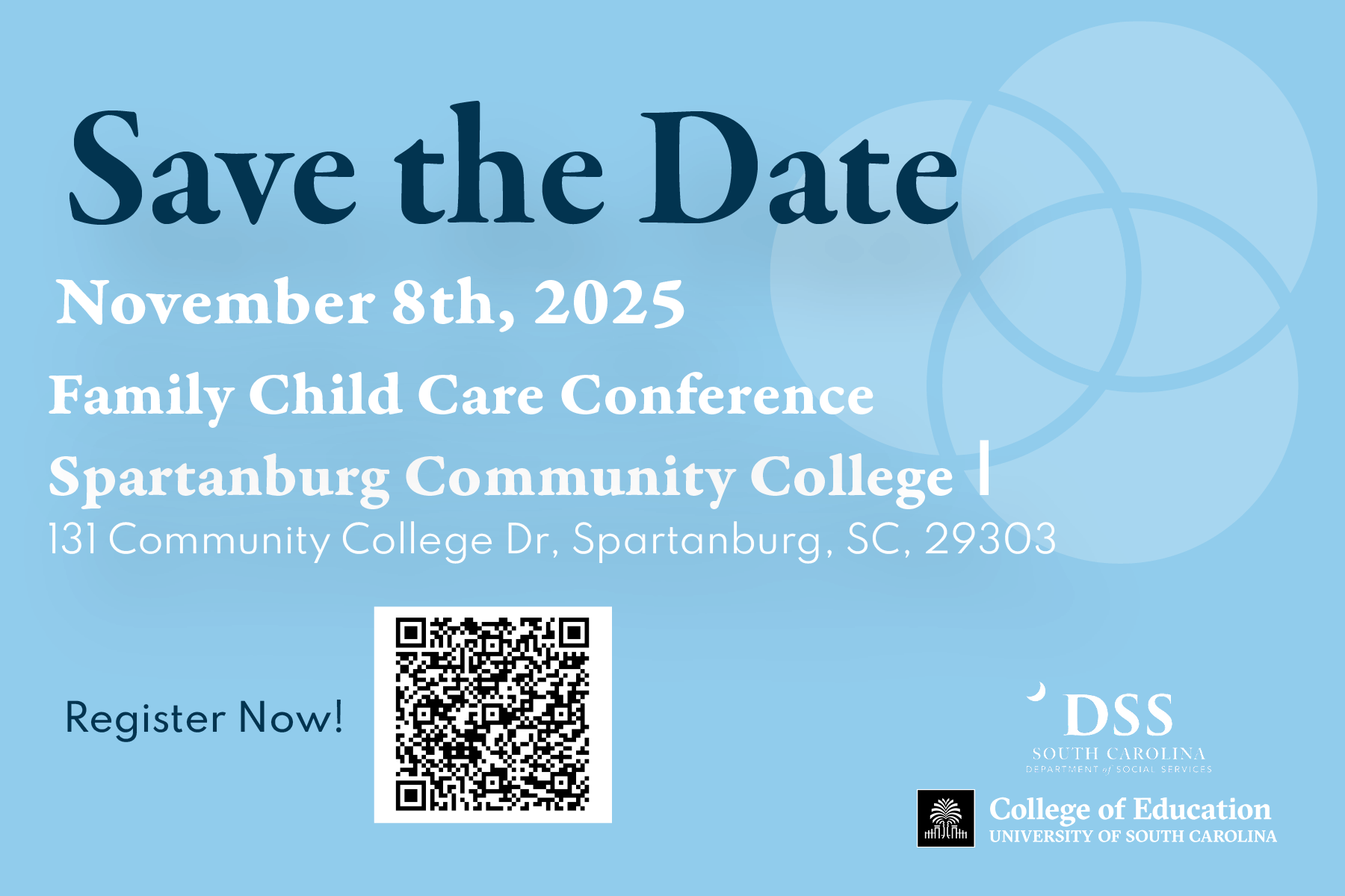 This conference will be in person only and held on Saturday, November 8th, 2025, at Spartanburg Community College, 131 Community College Dr, Spartanburg, SC, 29303.